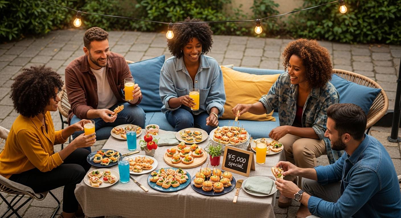まず大切なのは、人数に合わせた予算設定。4〜6人なら一人あたり1,000〜1,500円の出し合いで、十分な量のフィンガーフードやサンドイッチ類が揃います。Uber EatsやWolt等のデリバリーサービスを活用すれば、ピザやパスタなどの定番メニューも手軽に取り寄せ可能です。